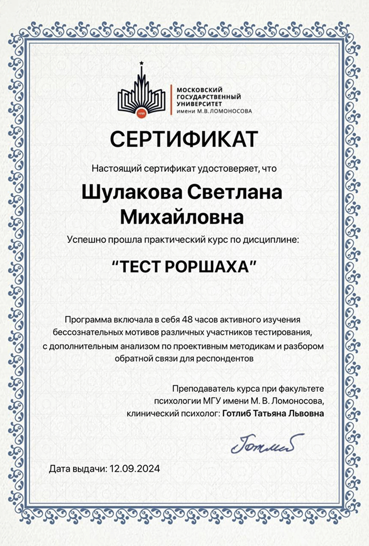 «Тест Роршаха» МГУ им. М.В.Ломоносова