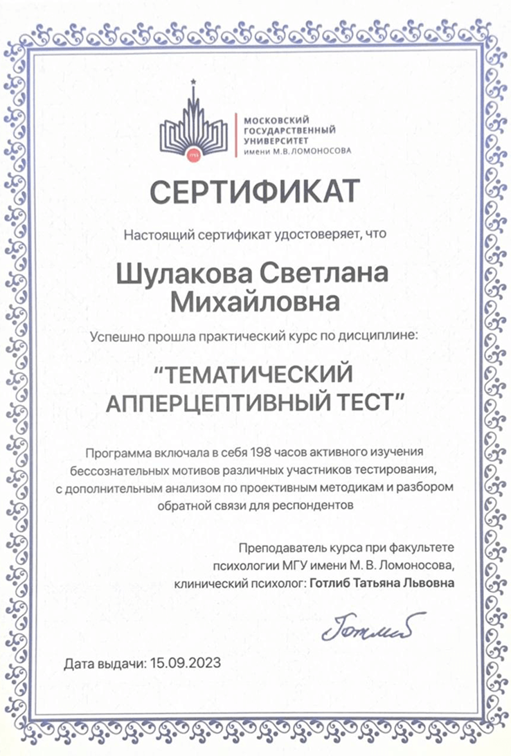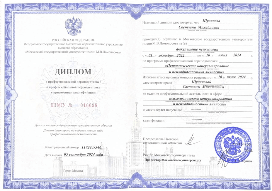 Психологическое консультирование и психодиагностика личности» МГУ им. М.В.Ломоносова