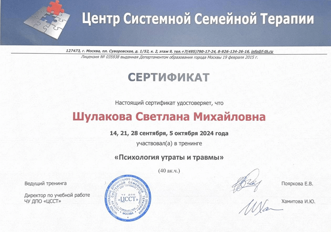 «Психология утраты и травмы» Центр Системной Семейной Терапии