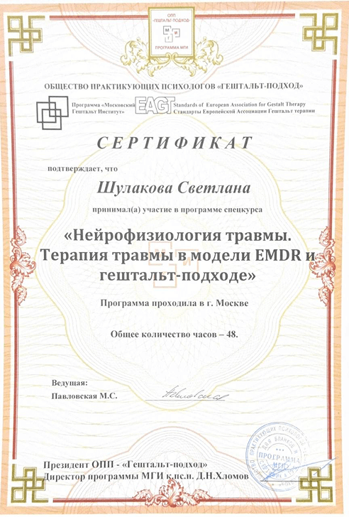 «Нейрофизиология травмы. Терапия травмы в модели EMDR и гештальт-подходе» Московский Гештальт Институт